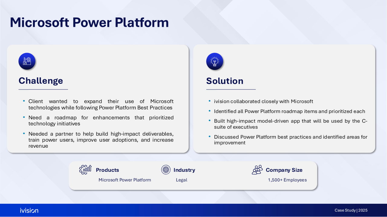 We’ve served over 200 clients of all sizes, helping them leverage current infrastructure assets and data, execute at higher consistency, and implement an agile methodology.